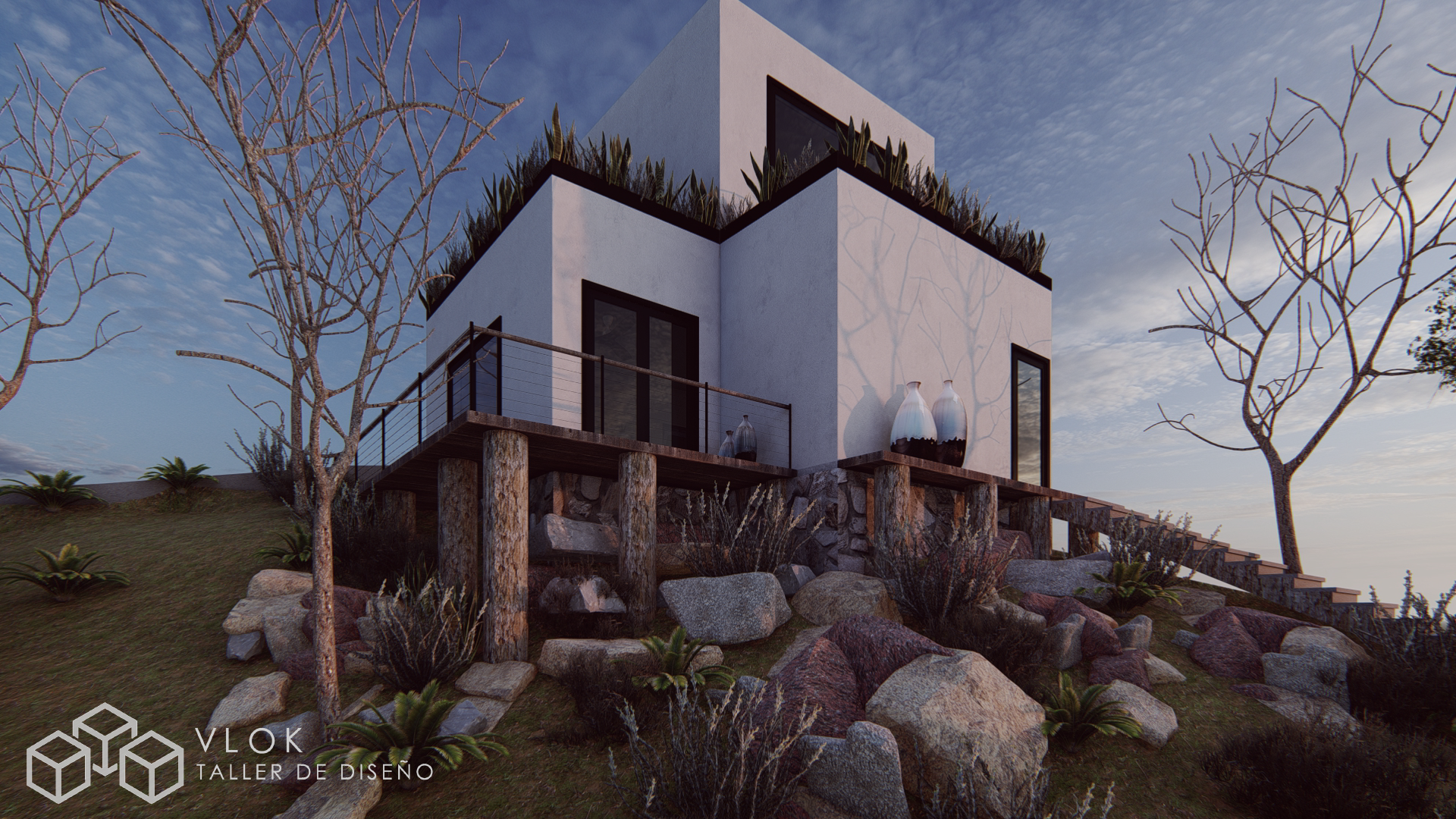 Proyecto en Ensenada Baja California, por despacho NATIVA, en la composición se busca conectarse con el contexto utilizando los materiales de la región al crear muros de tierra comprimida (en capas), buscando la armonía entre el diseño y el espacio que lo rodea.